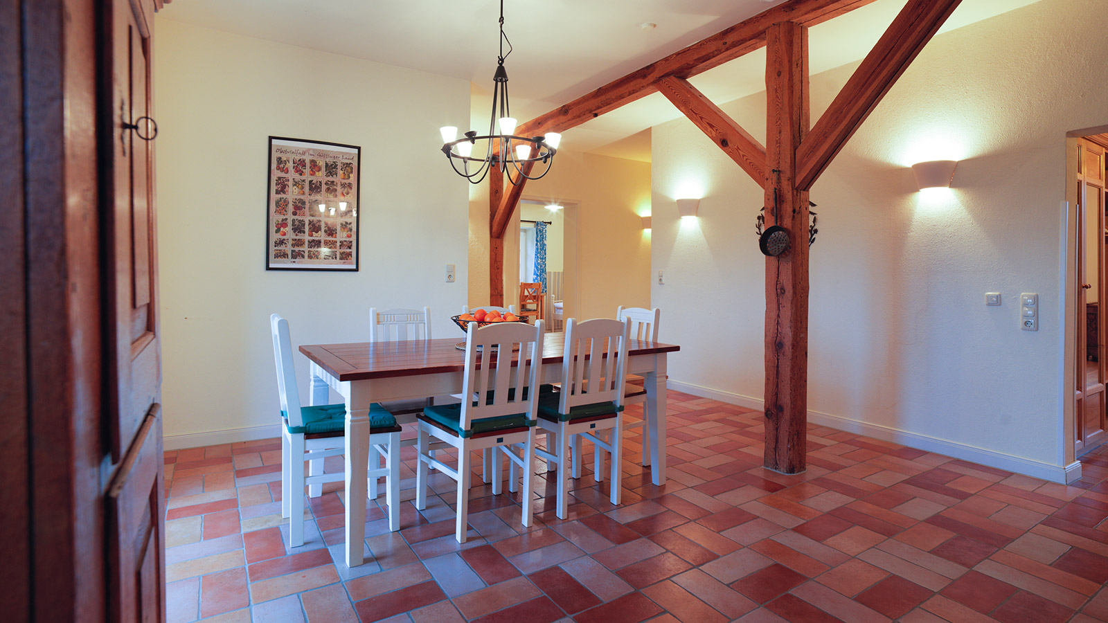 Diese Wohnung hat Zugang zur großen, hellen Tenne mit großem Tisch.