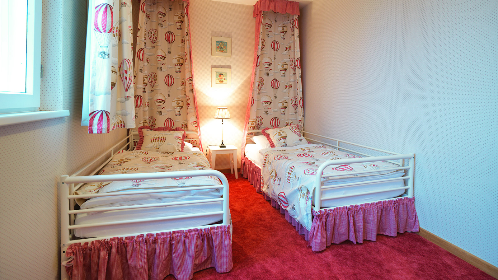 Im ersten Stock befinden sich das Doppelzimmer, das Wohnzimmer, die Küche (Spülmaschine) und das Bad mit Dusche, im zweiten Stock das Kinderzimmer, ausgestattet mit zwei Einzelbetten.