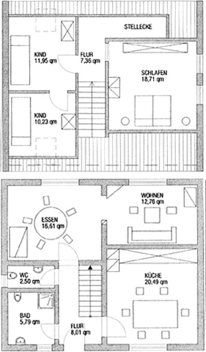 Das Ferienhaus „Mai“ mit ca. 110 qm bietet Platz für 6 Personen (2 Erwachsene, 4 Kinder). Es hat, verteilt auf zwei Etagen, ein Schlafzimmer mit Doppelbett und zwei Kinderzimmer mit jeweils einem Doppelstockbett in der oberen Etage.