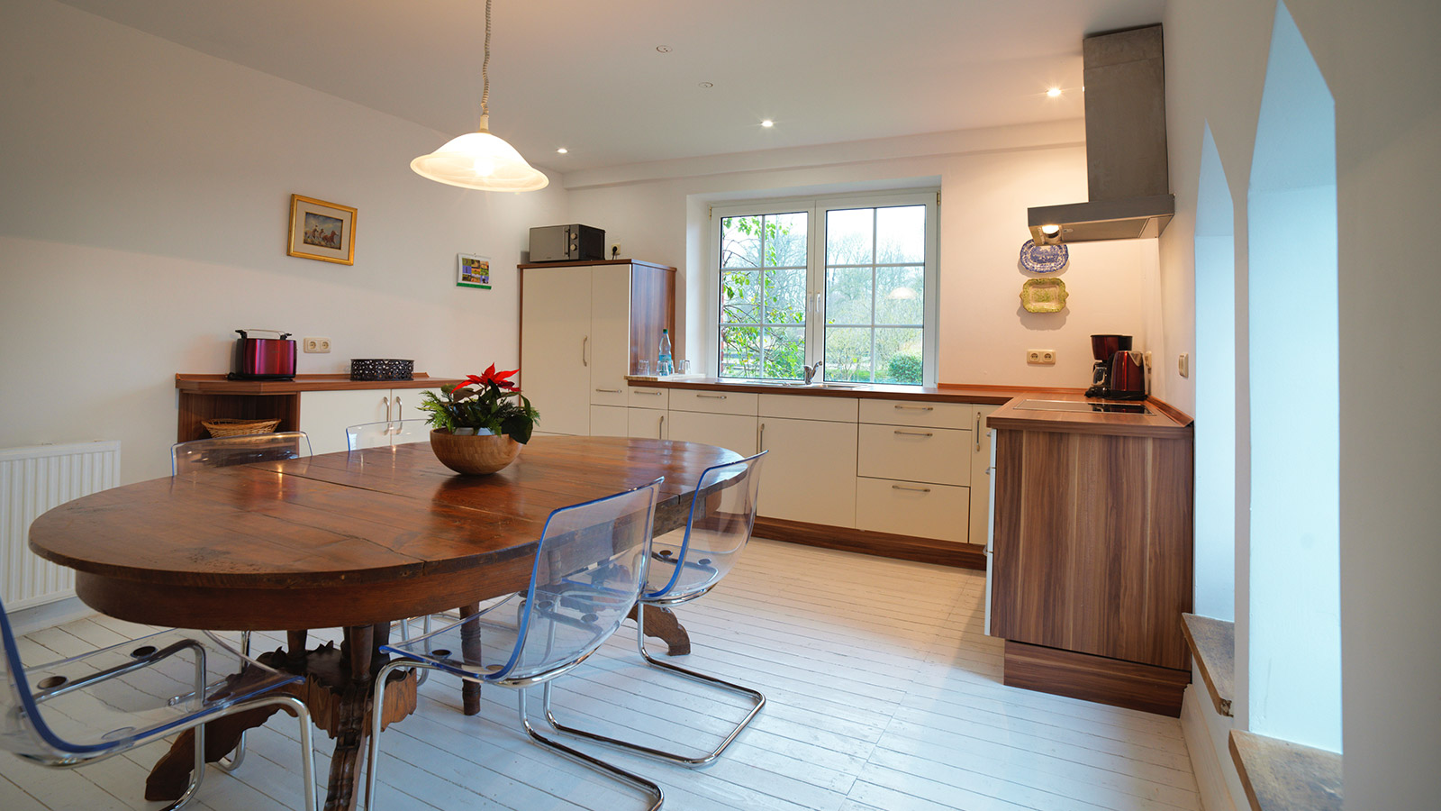 Dort können Kinder bei schlechtem Wetter spielen und große Familien zusammen essen. Ideal für bis zu 21 Personen, die die 4 Wohnungen gemeinsam mieten.