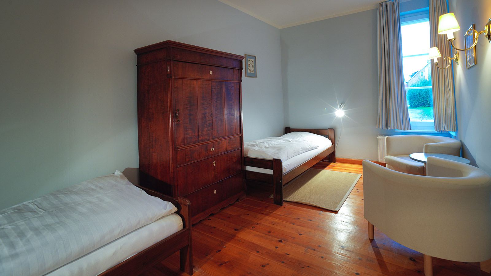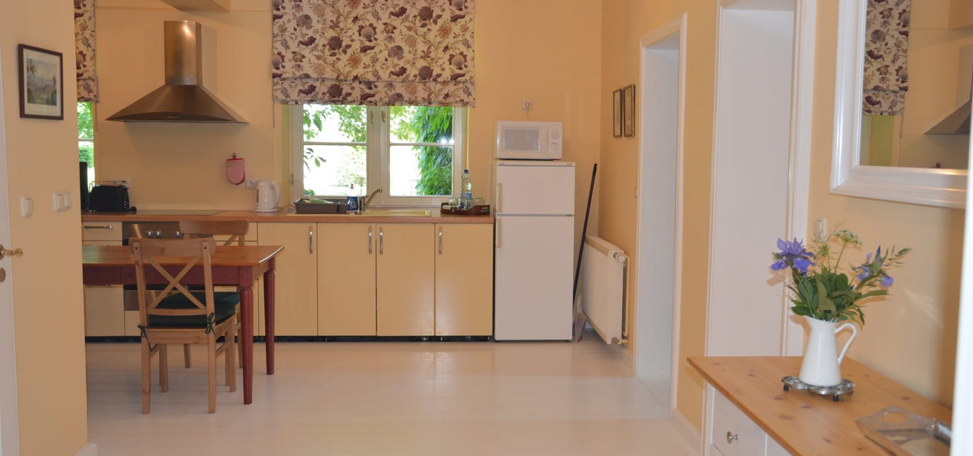 Die Kaminwohnung mit ca. 90 qm befindet sich im Erdgeschoss des alten Verwalterhauses.