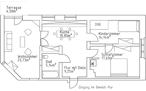 Es ist eine Ferienwohnung für vier Personen.