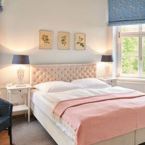 The “Turmwohnung 2” with approx. 70 square metres is located on the upper floor of the left wing of the manor house. The holiday flat is for 2 people. It consists of 1 double bedroom, bathroom with bathtub, living room and kitchen. This flat is not for smokers and has a beautiful view of the old park. TV, safe and Wifi are available to our guests. “Turmwohnung 2” can be converted into a large vacation apartment for 4 people via a connecting door together with “Turmwohnung 1”.